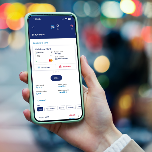 Mediolanum è sempre con te, qualunque sia la tua meta. Con le carte puoi pagare in sicurezza e affrontare gli imprevisti con più tranquillità. E con l’app e il sito, puoi tenere tutto sotto controllo. Scopri di più su come usare al meglio le tue carte in Italia e all’estero.