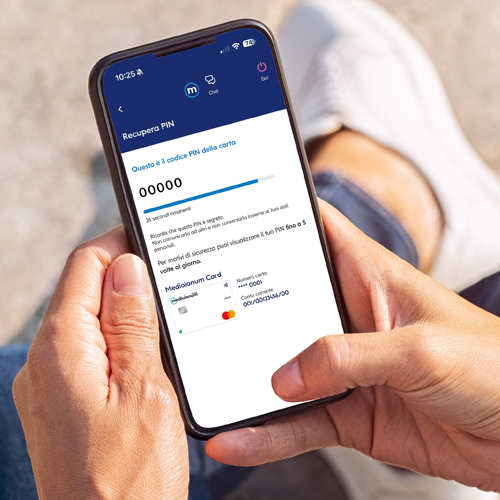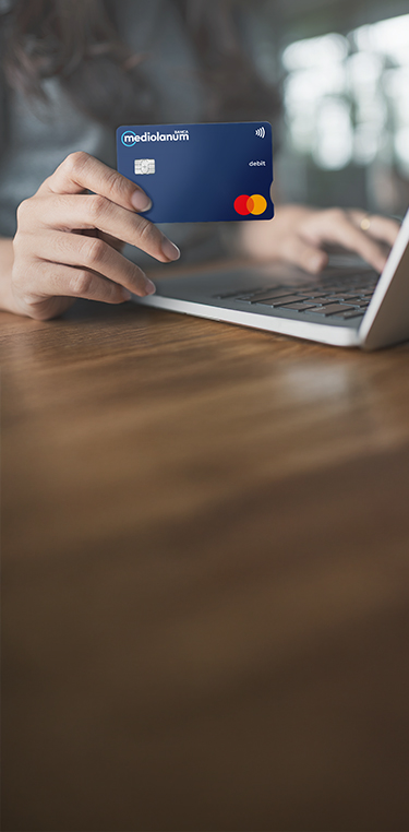 Puoi visualizzare nell’app Mediolanum e nella tua area riservata il numero di carta (PAN), il codice di sicurezza (CVC) e la data di scadenza così da registrare la carta in uno dei servizi di mobile payments supportati o fare subito acquisti online.