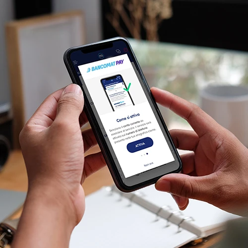 BANCOMAT Pay è il servizio digitale offerto da BANCOMAT che ti permette di inviare e ricevere denaro e di pagare online e in negozio in modo facile, sicuro e veloce tramite smartphone.