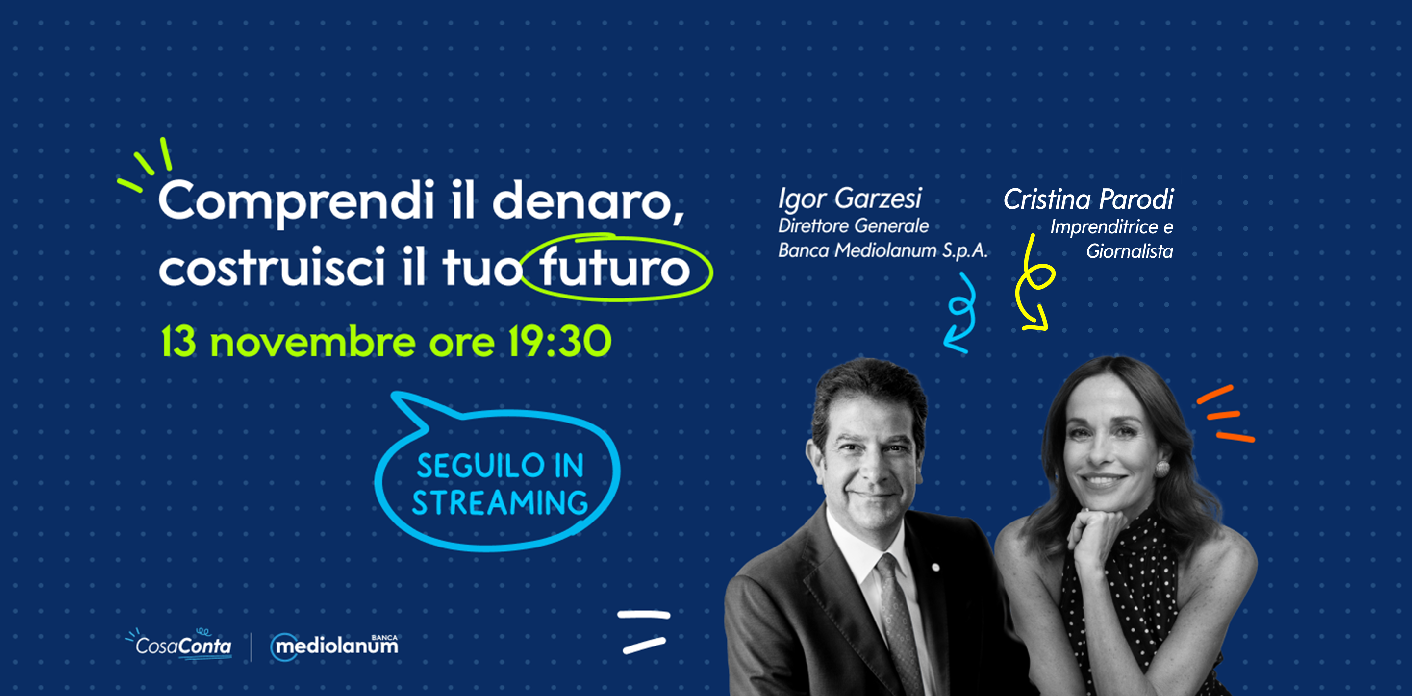 Cristina Parodi incontra Igor Garzesi, Direttore Generale di Banca Mediolanum, in un’intervista esclusiva dedicata ai temi del risparmio, della pianificazione e della digitalizzazione. Un dialogo per imparare a costruire un rapporto più consapevole con il denaro e progettare il futuro in modo sereno e responsabile. Non mancare!