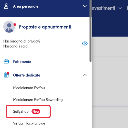 Accedi all'app Mediolanum oppure all'area riservata di bmedonline.it per consultare il catalogo completo. Troverai SelfyShop nel menu, nella categoria "Offerte dedicate".